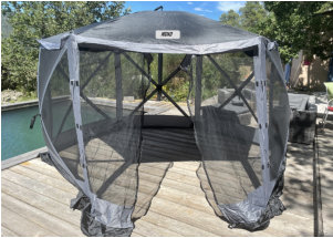des UV du soleil, et de parois latérales grillagées, ainsi que des panneaux fournis